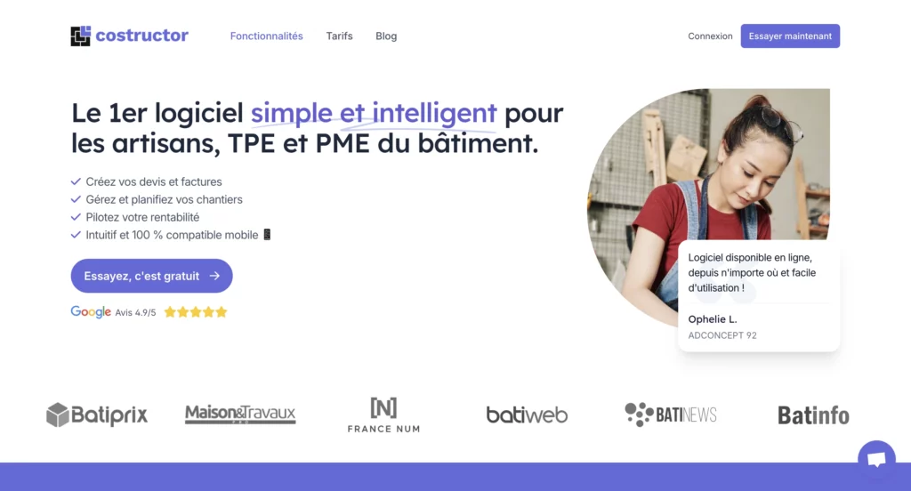 💰 Si vous avez un budget serré, Costructor propose une version gratuite adaptée aux indépendants, mais avec des fonctionnalités limitées.